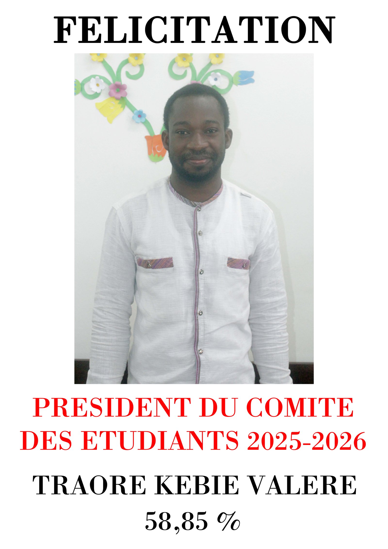 Kiébè Valère de l’ISSPR 3 a été élu avec 58.85%. Le Vice-président est Frère
